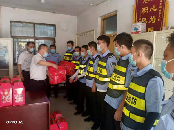 洹河保安公司黨委書記、董事長(zhǎng)、總經(jīng)理王高峰、黨委副書記、工會(huì)主席張錫軍和黨委班子成員熱情接待并表示感謝,感謝北關(guān)區(qū)總工會(huì)對(duì)公司一線職工的關(guān)心和愛護(hù),公司全體職工將堅(jiān)持不懈、恪盡職守,全力迎戰(zhàn),為守護(hù)一方平安作出應(yīng)有的貢獻(xiàn)。