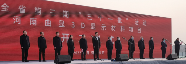 2022年1月4日上午,集團(tuán)副總經(jīng)理溫惠玲陪同市委副書記、市紀(jì)委書記黃明海,市政府副市長(zhǎng)王新亭,市政府副市長(zhǎng)、安陽(yáng)縣委書記王紅兵以及河南投資集團(tuán)有限公司、市城鄉(xiāng)一體化示范區(qū)、東旭集團(tuán)、新石器公司等相關(guān)領(lǐng)導(dǎo)前往示范區(qū)參加我市“三個(gè)一批”項(xiàng)目開(kāi)工儀式。在開(kāi)工儀式活動(dòng)現(xiàn)場(chǎng),黃明海書記宣布全市第三期“三個(gè)一批”活動(dòng)暨河南曲顯3D顯示材料項(xiàng)目開(kāi)工。