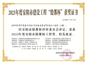 殷都杯”獎是安陽市住建局為提高我市建設工程質(zhì)量,促進建設工程參建各方加強質(zhì)量管理所設置的獎項,是我市建設工程質(zhì)量最高榮譽獎。2023年上半年,安陽市住建局開展了本年度“殷都杯”獎評選活動,通過復查審定,5月份對獲獎的工程進行了公示,并于上周正式下發(fā)相關(guān)榮譽證書。