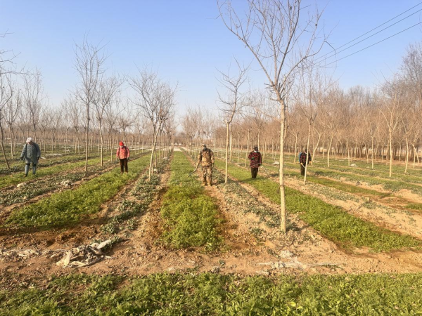 根據(jù)不同項(xiàng)目的管護(hù)要求,采取了科學(xué)有效的管護(hù)措施。在柏莊鎮(zhèn)藥用牡丹育苗基地,項(xiàng)目團(tuán)隊(duì)積極把握農(nóng)時(shí),全面推行精準(zhǔn)除草措施,組織人員及時(shí)清除地膜、打除草劑,確保藥用牡丹擁有優(yōu)良的生長環(huán)境。磊口鄉(xiāng)大櫻桃種植區(qū)域已開始進(jìn)行全面消毒滅菌工作,通過科學(xué)的病蟲害防治手段,保障果樹花期安全及產(chǎn)量、品質(zhì)的提升。東崗鎮(zhèn)連翹項(xiàng)目在前期種植基礎(chǔ)上,即將啟動(dòng)精細(xì)化補(bǔ)植計(jì)劃,依據(jù)項(xiàng)目所在地土壤墑情和苗木生長實(shí)際情況,合理配置資源,對(duì)缺株區(qū)域?qū)嵤┚珳?zhǔn)補(bǔ)種,確保種植基地連翹苗木分布均勻,生長健壯。