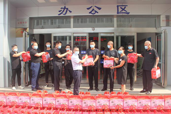 8月9日、10日北關(guān)區(qū)總工會副主席薛梅、保障部部長司尚雯來到安陽市洹河保安服務有限責任公司,送來抗洪防疫慰問品鮮桃500多箱,向堅守崗位、奮戰(zhàn)一線的保安隊員進行慰問,提醒大家做好防控工作的同時一定要做好自身防護。